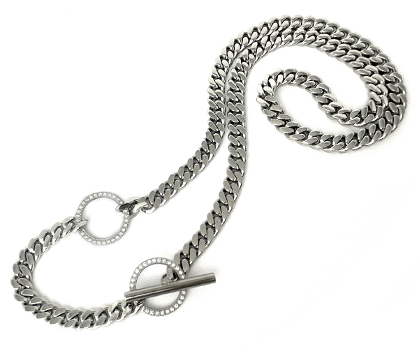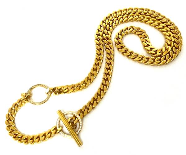 ジルコニアで縁取ったマンテルがアクセント、喜平のT-BARネックレス。